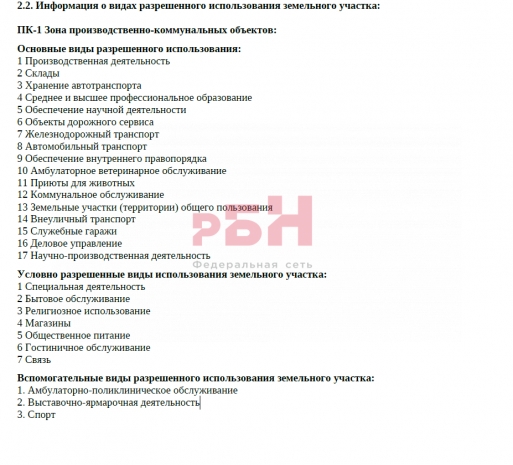 - земельный участок расположен в территориальной зоне - ПК-1, из основных видов разрешенного использования: Производственная деятельность и Склады