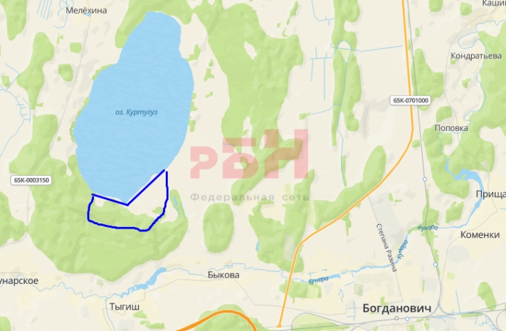 Продается земельный участок на берегу озеро Куртугуз площадью 33,77 га.