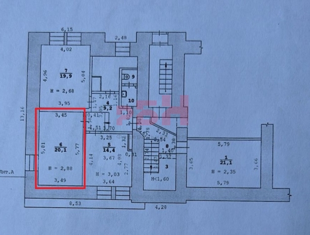 - Высота потолков 2,88 м.;
