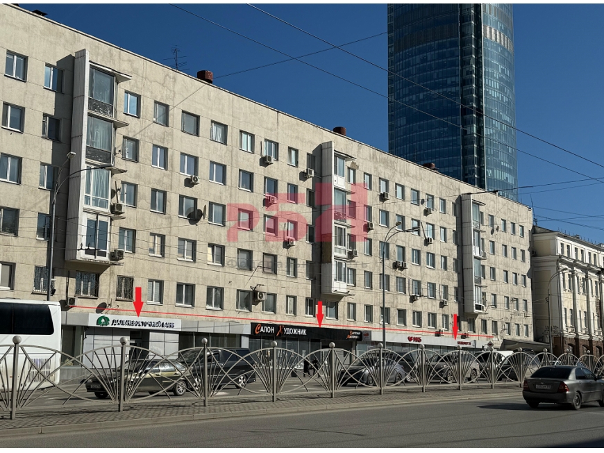 - Расположено на 1 этаже и в подвале 6-этажного жилого дома в деловом центре Екатеринбурга, в квадрате 2-х главных улиц города – пр. Ленина и ул.Малышева